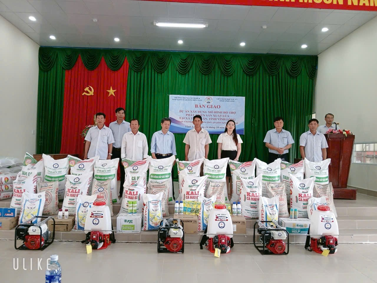 Thực hiện Chương trình mục tiêu quốc gia giảm nghèo bền vững giai đoạn 2021–2025, năm 2025 Trường Trung cấp nghề và Đào tạo cán bộ hợp tác xã miền Nam – Liên minh hợp tác xã Việt Nam phối hợp với Liên minh hợp tác xã tỉnh Vĩnh Long triển khai hai mô hình hỗ trợ phát triển sản xuất nông nghiệp tại địa phương.